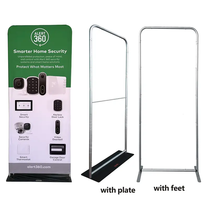 Tá Fráma Cúlra an Dorais déanta as cóimhiotal alúmanaim préimhe, buaileann sé an chothromaíocht foirfe sin idir a bheith éadrom ach docht - is féidir leat é a iompar ó do charr go dtí an t-ionad gan allais a bhriseadh, ach ní bheidh sé ag sluthú nuair a scuabann aíonna é. Tá sceal caolchúiseach ag an bailchríoch airgid caol a chomhlánaíonn beagnach aon chúlra, cibé an bhfuil póstaer poiblíochta trom nó bratach fabraice bog in úsáid agat le haghaidh bainise. Agus tionól? Léimeann sé le chéile i nóiméid, gan aon chodanna mearbhall nó uirlisí breise ag teastáil - fiú má tá tú ag déanamh é i d'aonar.